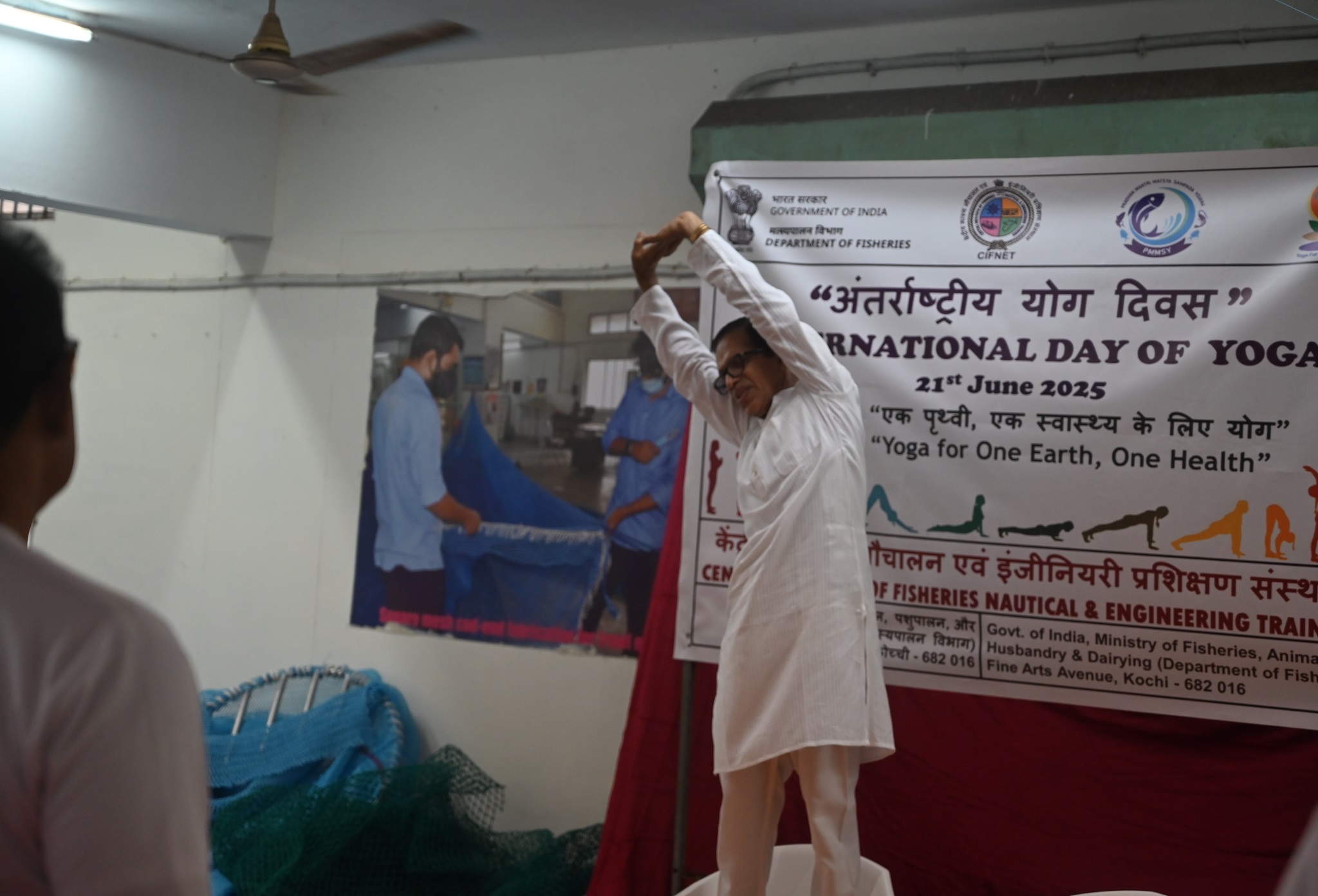 Celebration of 11th International Day of Yoga2025 with the Theme Yoga For One Earth One Health was inaugurated in CIFNET HQ by DIRECTOR on 21.6.25, 0700 hrs. Yogacharya Sh.Vijayakumar, Art of Living Foundation Kochi demonstrated Yoga postures to participants.
